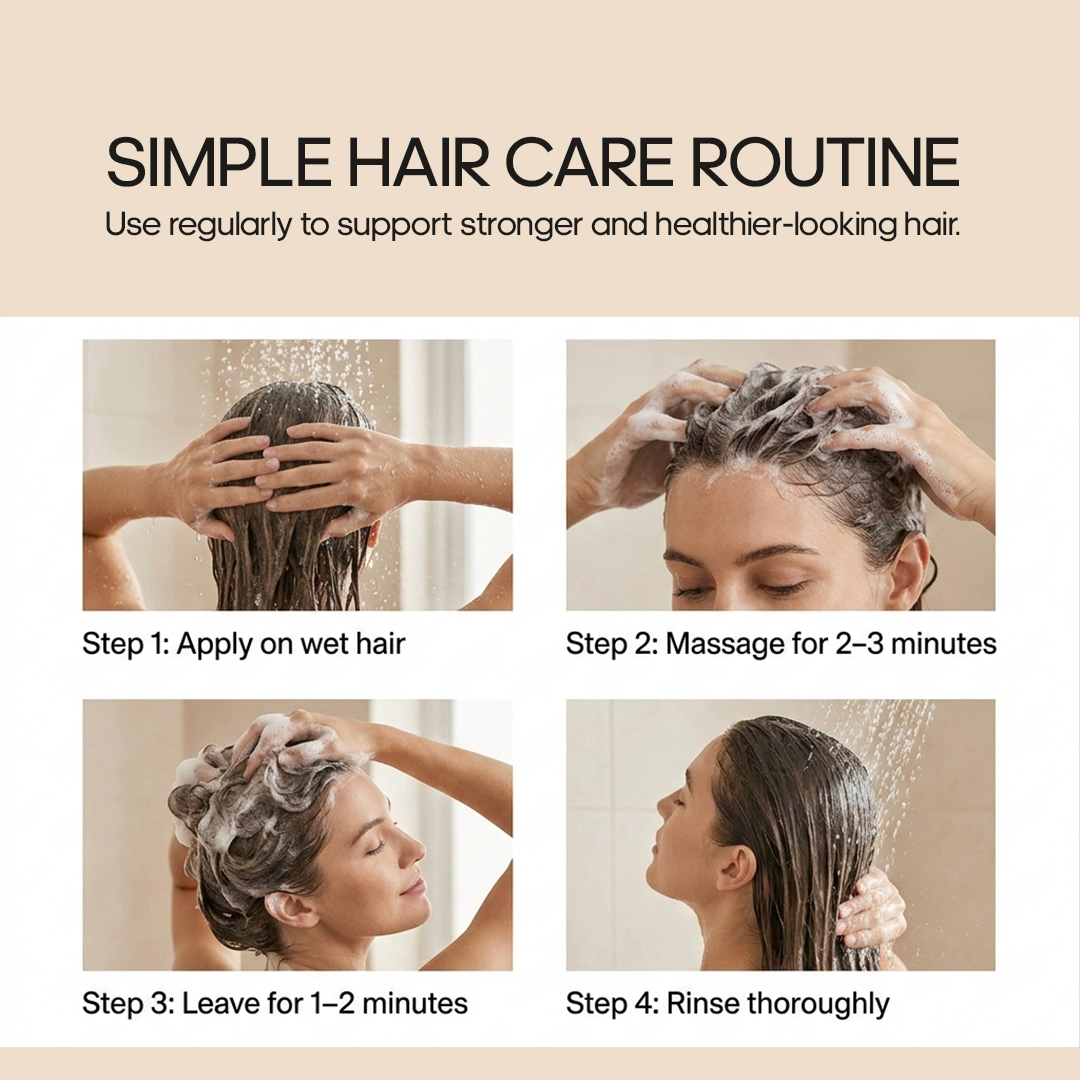 A clinically designed Biotin shampoo enriched with peptides and caffeine that helps strengthen hair fibers, reduce breakage, and improve overall hair texture with regular use.