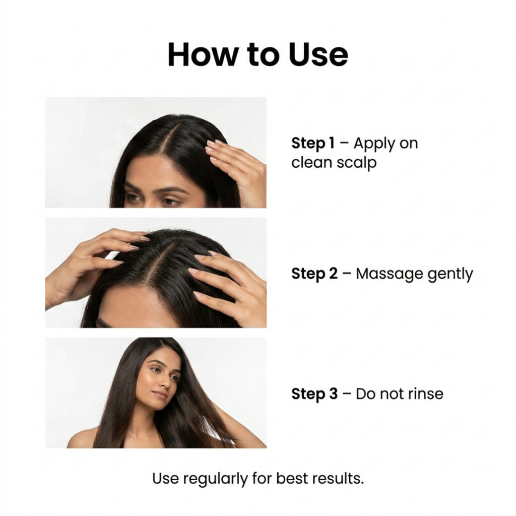 1. Apply OXZYN Hair Serum on a clean, dry scalp.